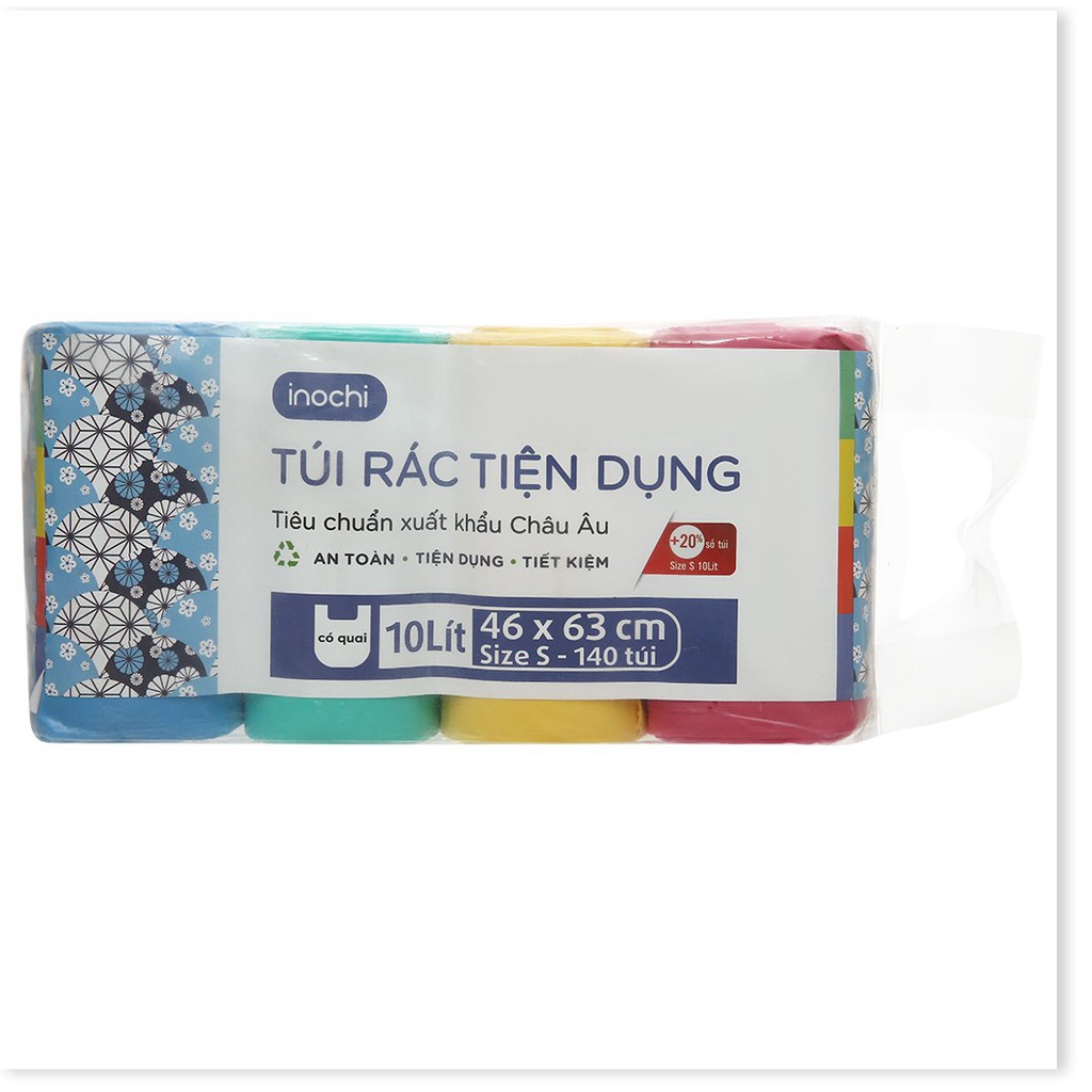 Nhà cửa & Đời sống > Dụng cụ chăm sóc nhà cửa > Túi nilon & túi rác || Lô 4 cuộn 140 túi rác y tế tự hủy Inochi tiện dụng 10L (nhiều màu) - Túi rác không mùiCòn hàng