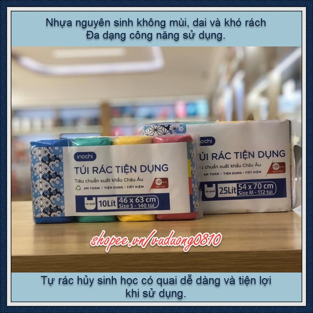 Lô 4 cuộn túi rác Inochi tiện dụng 10L (nhiều màu)Mã SP: TR007