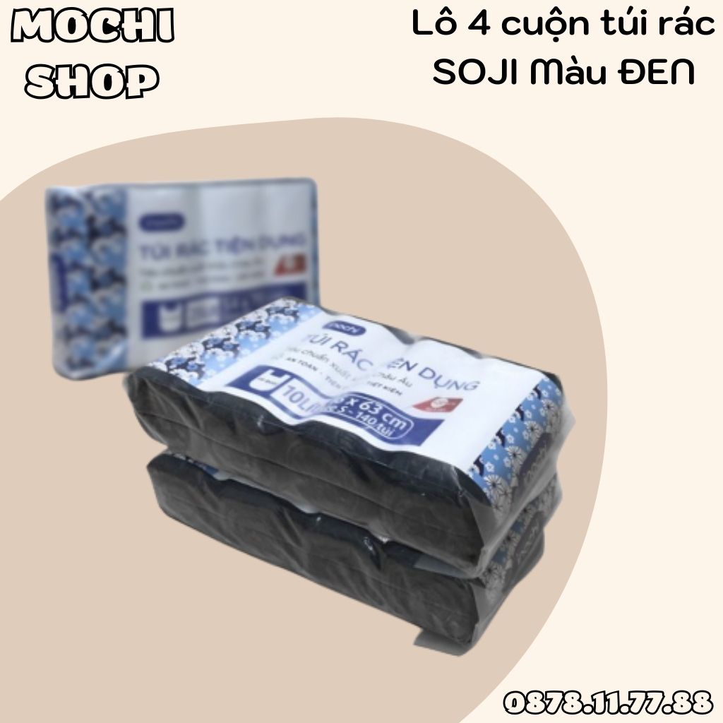 Lô 4 Cuộn Túi Rác MÀU ĐEN Soji Inochi, Túi Đựng Rác Có Quai Tiện Dụng, Vệ Sinh, An Toàn
