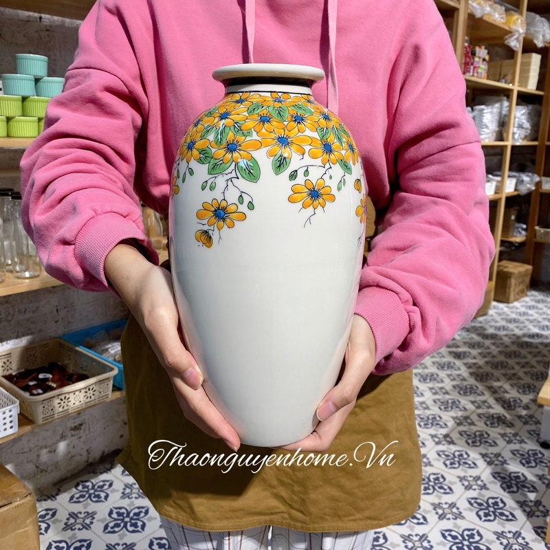 Nhà cửa & Đời sống > Trang trí nhà cửa > Bình trang trí || Lọ bình hoa gốm sứ vẽ tay cao cấp Bát Tràng mẫ hoa cúc dáng caoCòn hàng