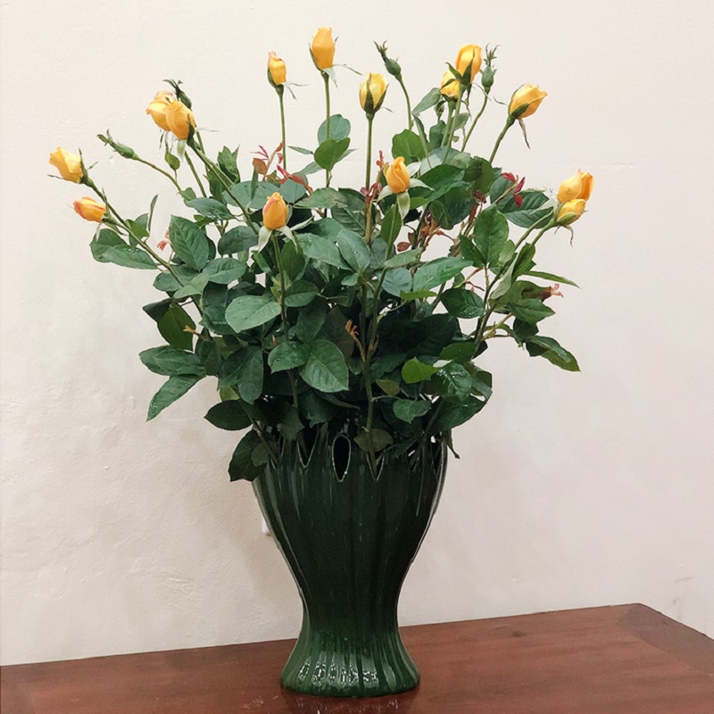 - Lọ hoa làm từ chất liệu sứ cao cấp, bền đẹp . Bạn có thể dùng để cắm hoa hoặc tạo điểm nhấn trang trí cho không gian. Lọ hoa thủy tinh có thể để trên bàn làm việc ở văn phòng, làm duyên cho tủ sách, phòng ngủ, hay phòng khách,phòng thờ… tạo thêm sự bắt mắt, tinh tế.