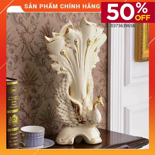 Nhà cửa & Đời sống > Trang trí nhà cửa > Bình trang trí || Lọ Cắm Hoa Bằng Gốm Sứ Trắng Viền Vàng- Họa Tiết Chim Công Khoe Sắc Phong Cách Hoàng Gia Sang Chảnh-Bình Cắm Bông ĐẹpCòn hàng