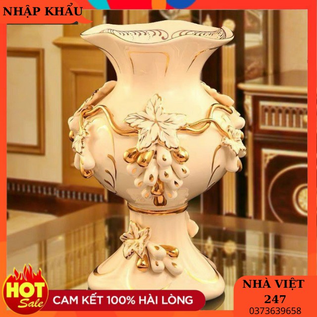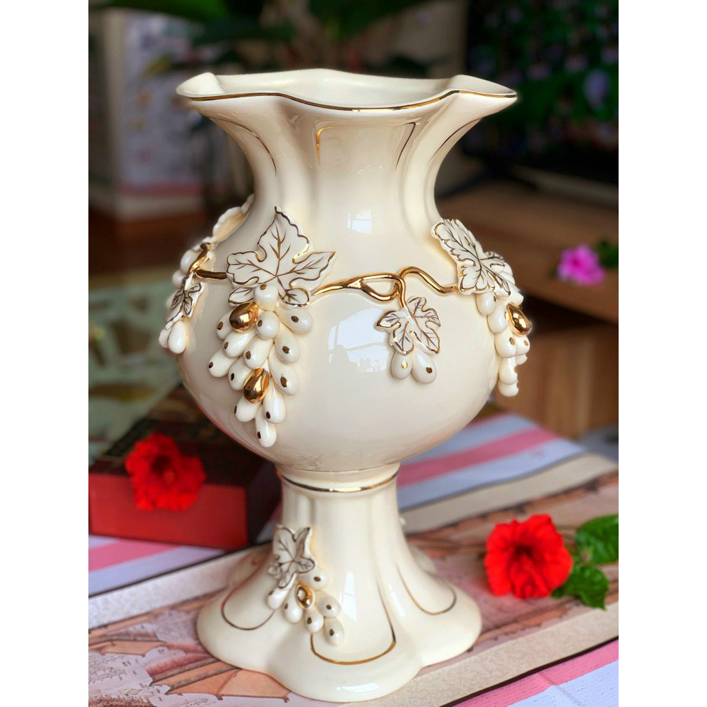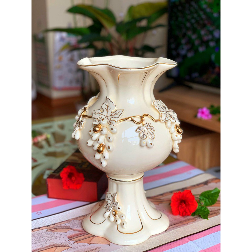 Lọ Cắm Hoa Chất Liệu Gốm Trắng Vễ Vàng- Nhập Khẩu- Phong Cách Hoàng Gia -Bình Cắm Bông Sang Chảnh KT 28*36CM