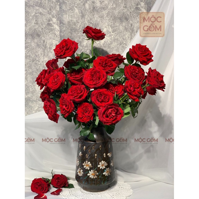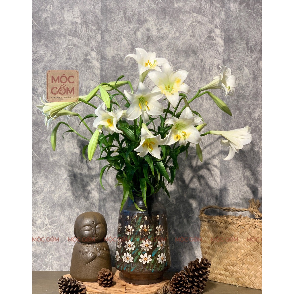 Lọ cắm hoa gốm sứ Bát Tràng men nâu mộc vẽ tay thủ công hoa cúc họa mi vintage trang trí phòng khách đẹp Mộc GốmMÔ TẢ: