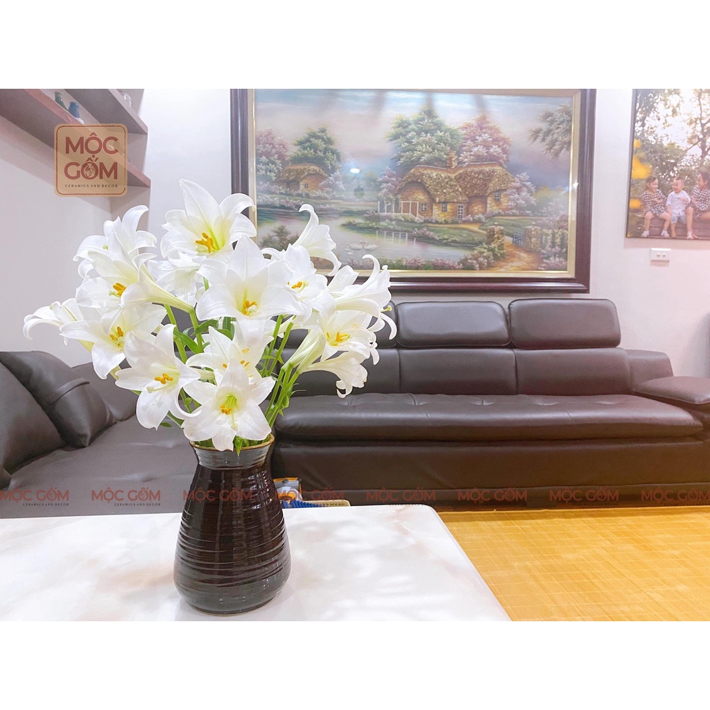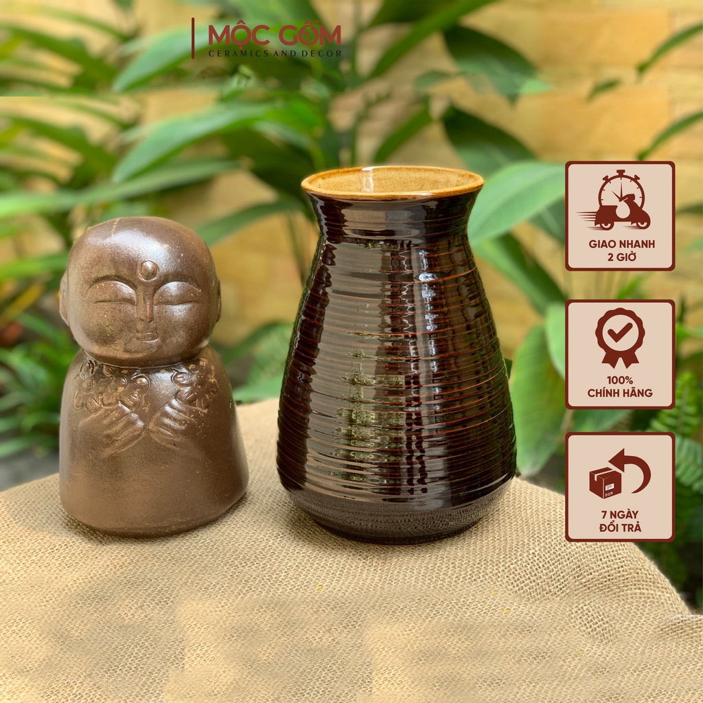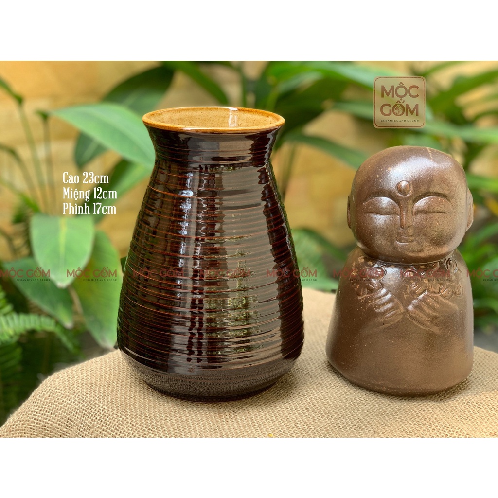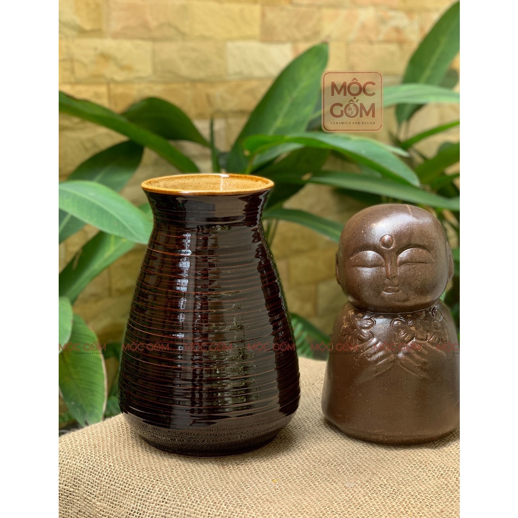 Lọ cắm hoa gốm sứ Bát Tràng men nâu bóng dáng basic phong cách vintatrang trí phòng khách đẹp Mộc Gốm MG81