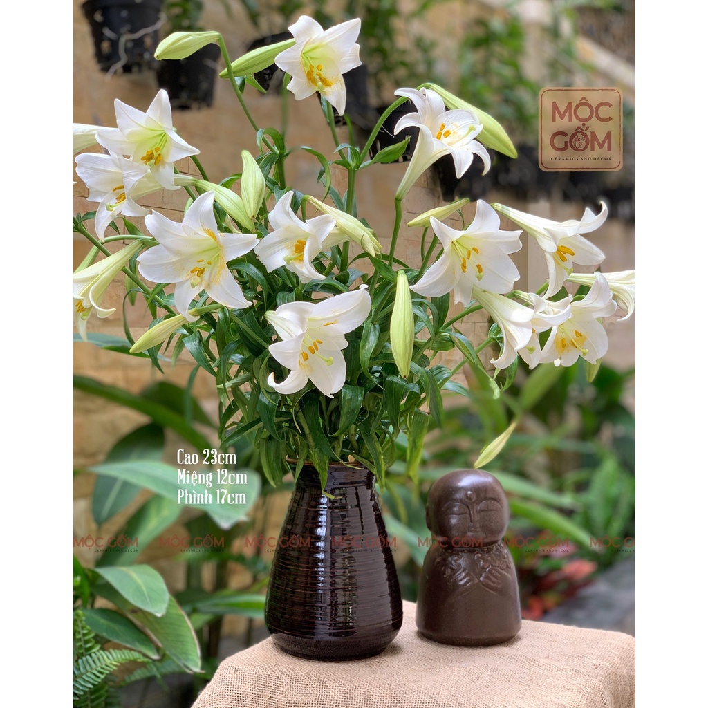 Nhà cửa & Đời sống > Trang trí nhà cửa > Bình trang trí || Lọ cắm hoa gốm sứ Bát Tràng men nâu bóng dáng basic phong cách vintatrang trí phòng khách đẹp Mộc Gốm MG81Còn hàng