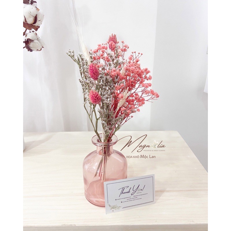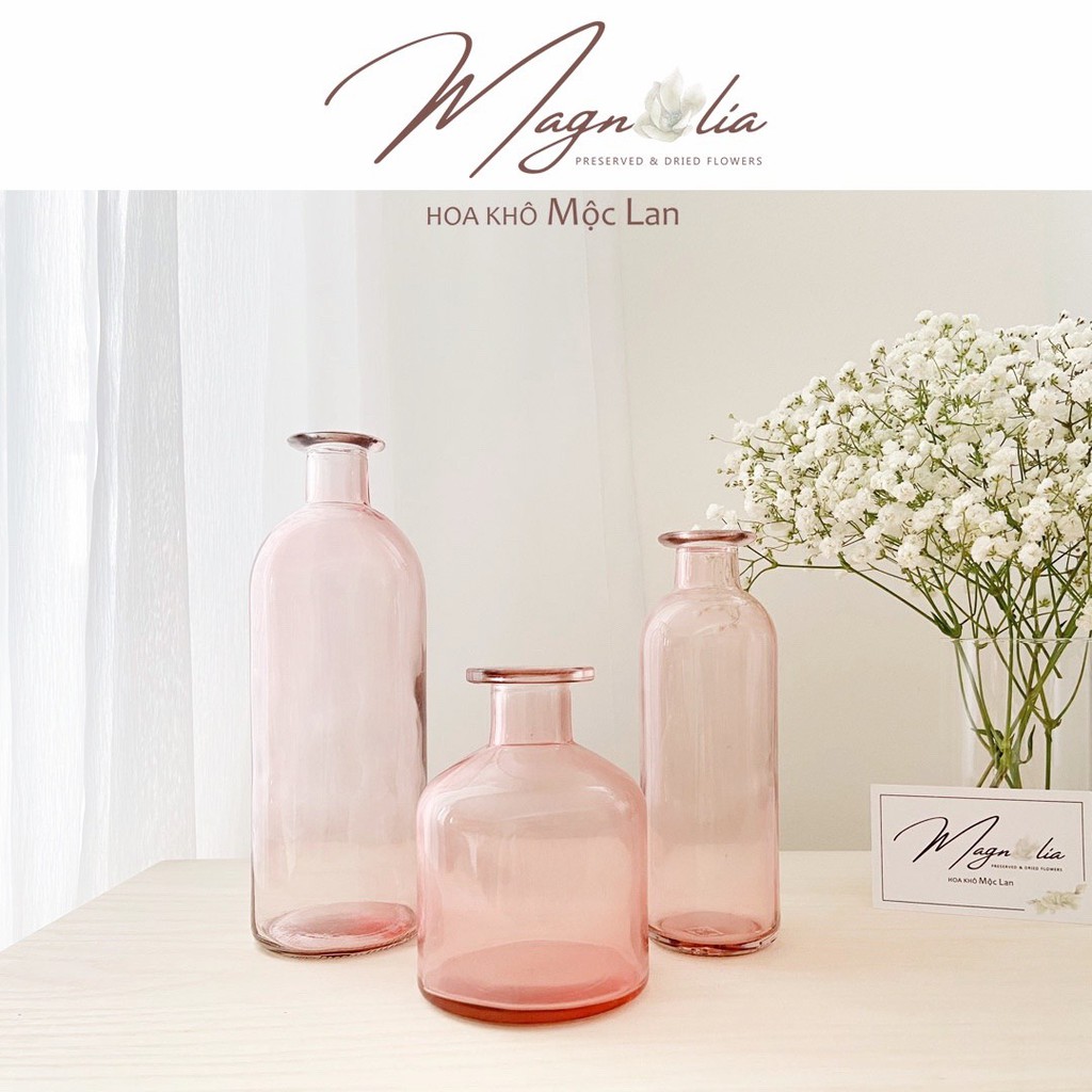 Lọ cắm hoa khô thuỷ tinh màu hồng pastel, trang trí chụp ảnh, decor nhà cửaMô tả sản phẩm: