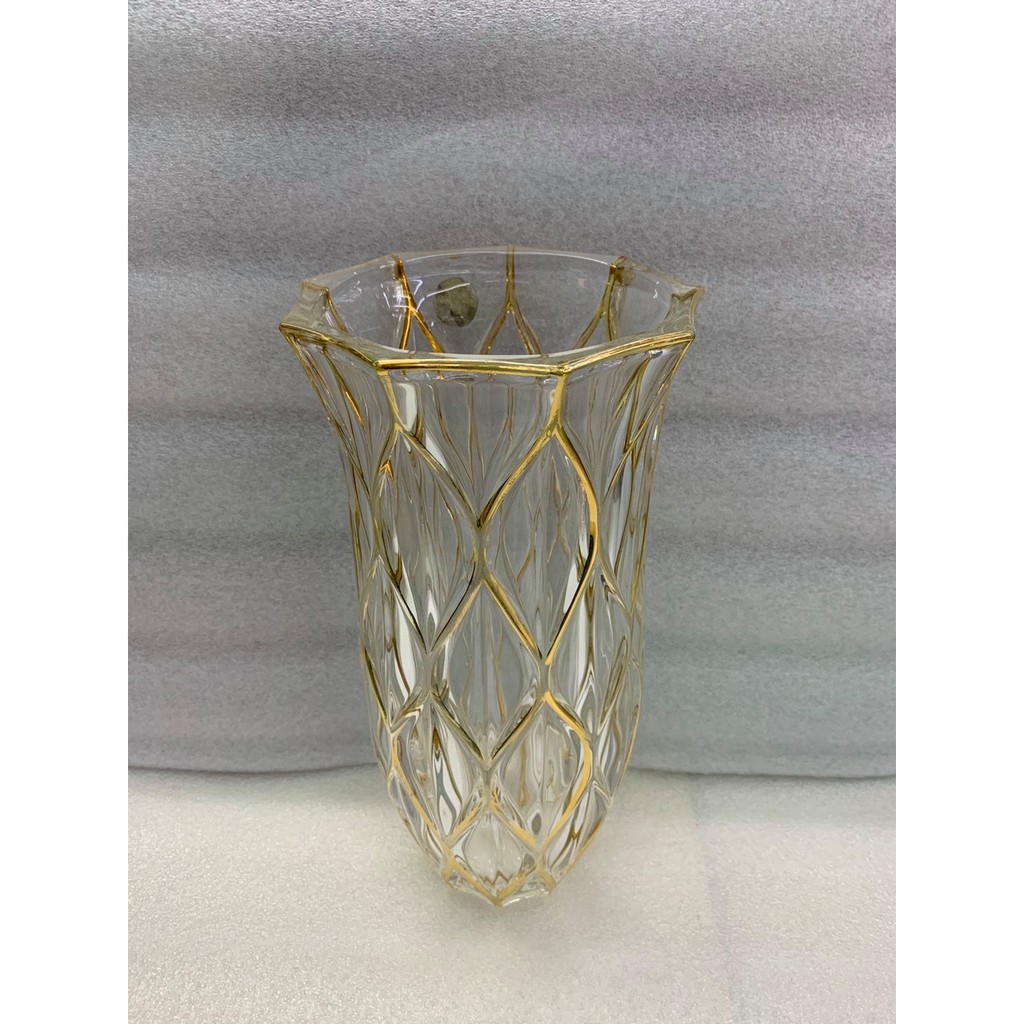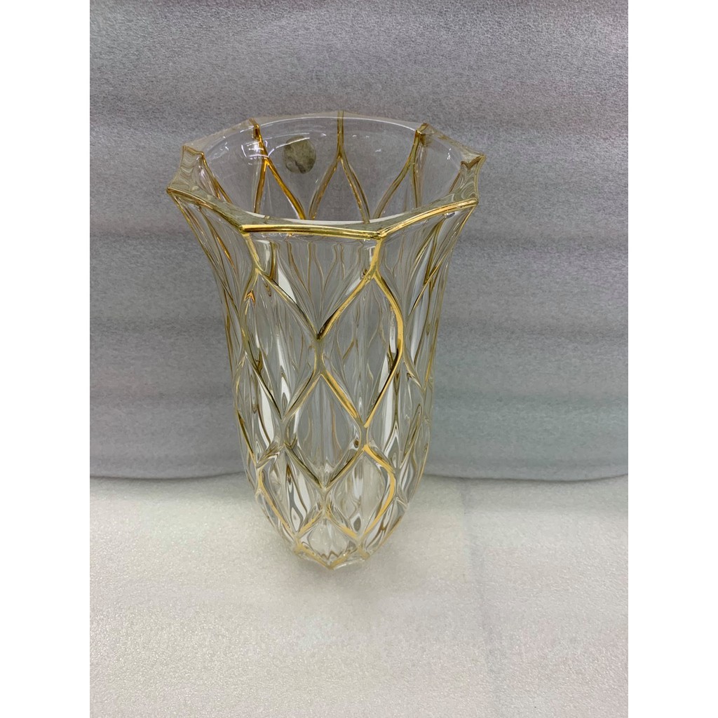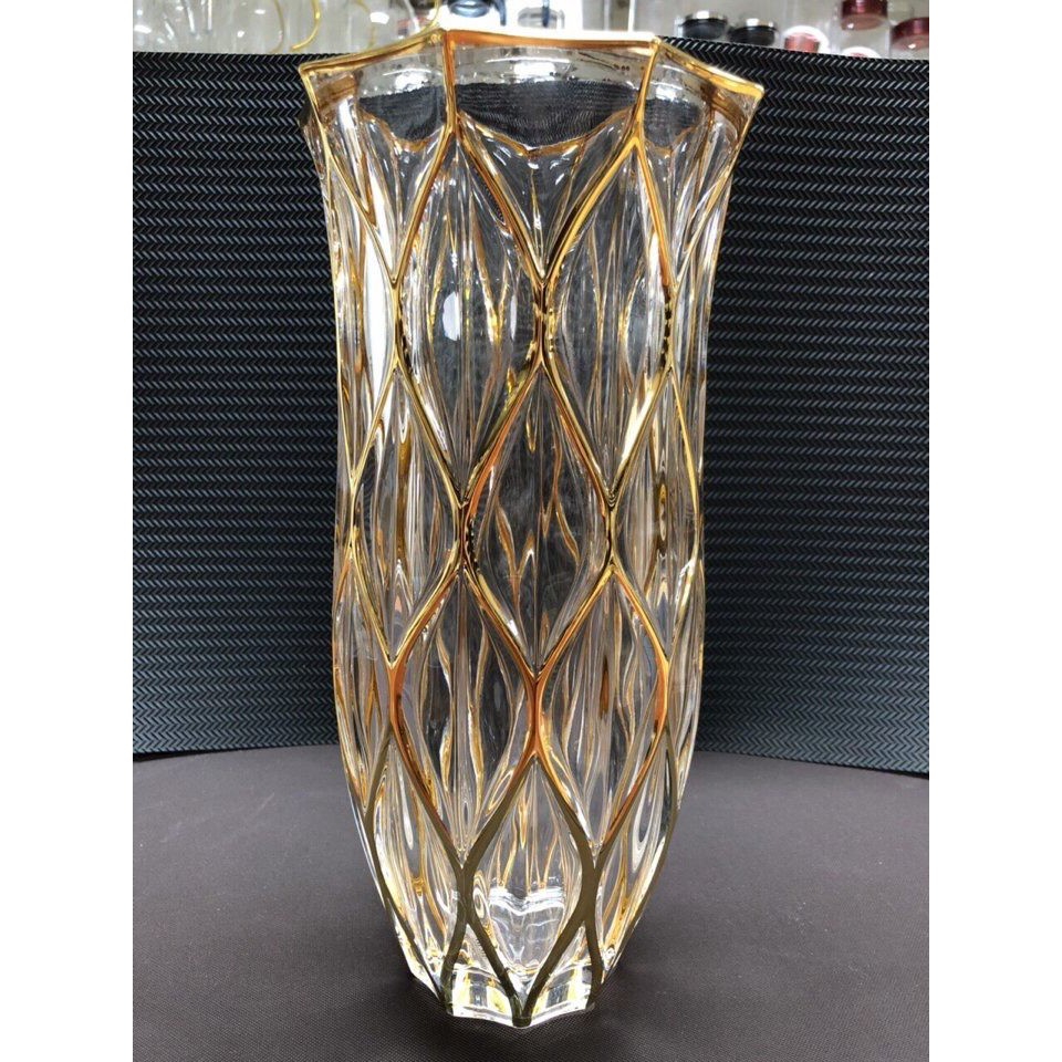 Lọ cắm hoa thủy tinh 30cm mắt trám viền vàng