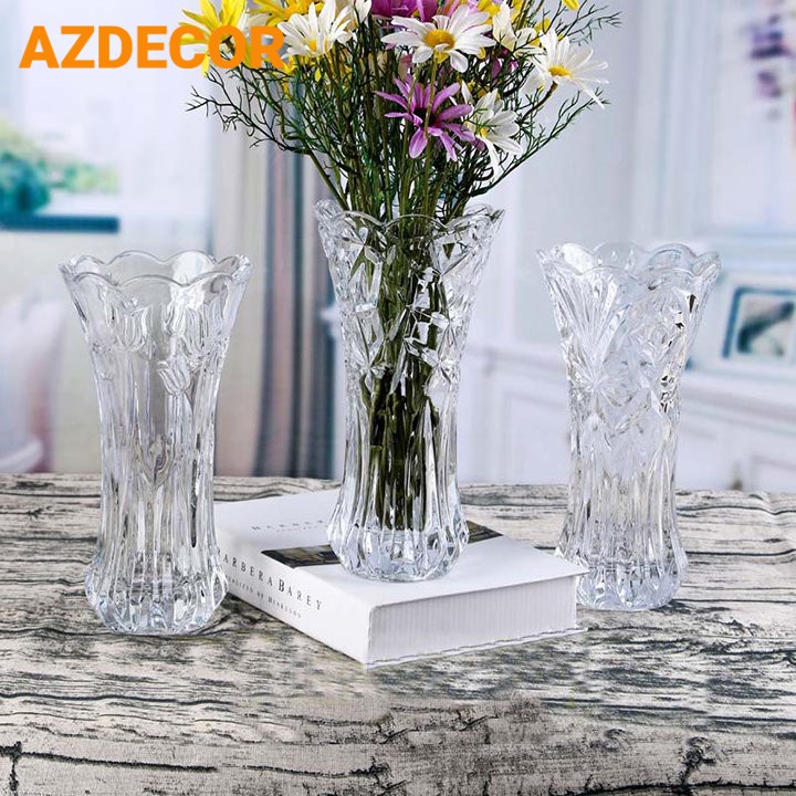 Lọ cắm hoa thủy tinh, lọ hoa trong suốt hoa văn đặc sắc---------------------------------
