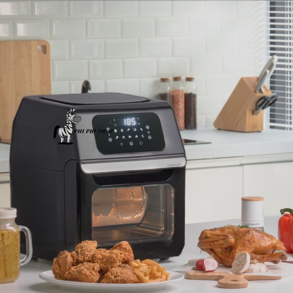 Lò Chiên Không Khí 12 Lít Lock&Lock EJF696BLK - lò chiên không dầu Hàng Chính Hãng- Màn hình LED cảm ứng