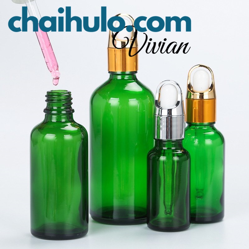 Lọ Chiết Mỹ Phẩm Lọ Chiết Nước Hoa Serum Mini Chai Lọ Thủy Tinh Đựng Tinh Dầu Màu Xanh Lá Nắp Bóp Khoét Vàng/Bạc Nhỏ Gọt