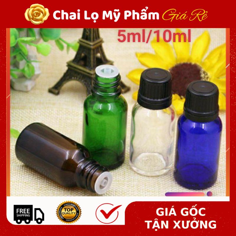 Giới thiệu Lọ Chiết Serum ❤ RẺ VÔ ĐỊCH ❤ [5ml,10ml] Lọ đựng tinh dầu thủy tinh nắp đen nhỏ giọt , phụ kiện du lịch