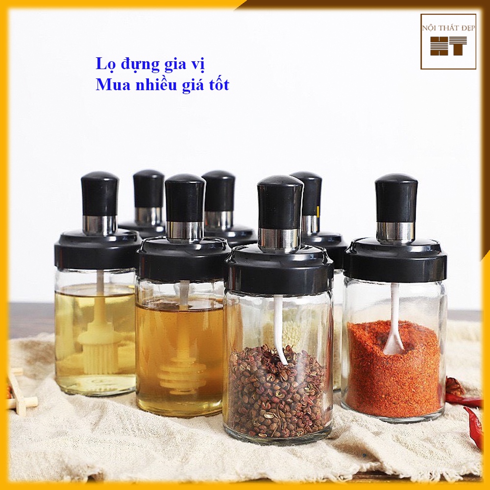 Lọ để gia vị nhà bếp bằng thủy tinh, có nắp gắn thìa, thuận tiện lấy đồ