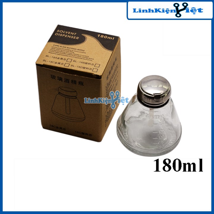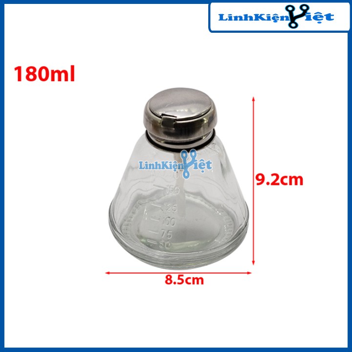 Lọ Đựng Dung Dịch Thủy Tinh 150ml, 180mlLọ đựng dung dịch được làm bằng thủy tinh chuyên dụng dùng để sử dụng trong việc chứa các loại chất lỏng như putin, xăng thơm hay nước tẩy rửa main. Sản phẩm có lõi hút bằng thép giúp lấy dung dịch cần thiết dễ dàng