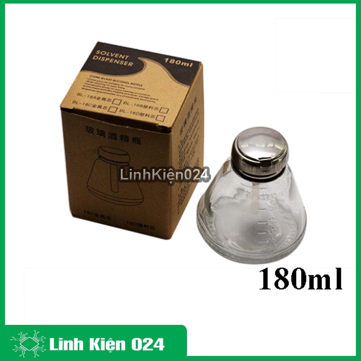 Lọ Đựng Dung Dịch Thủy TinhLọ đựng dung dịch được làm bằng thủy tinh chuyên dụng dùng để sử dụng trong việc chứa các loại chất lỏng như putin, xăng thơm hay nước tẩy rửa main. Sản phẩm có lõi hút bằng thép giúp lấy dung dịch cần thiết dễ dàng