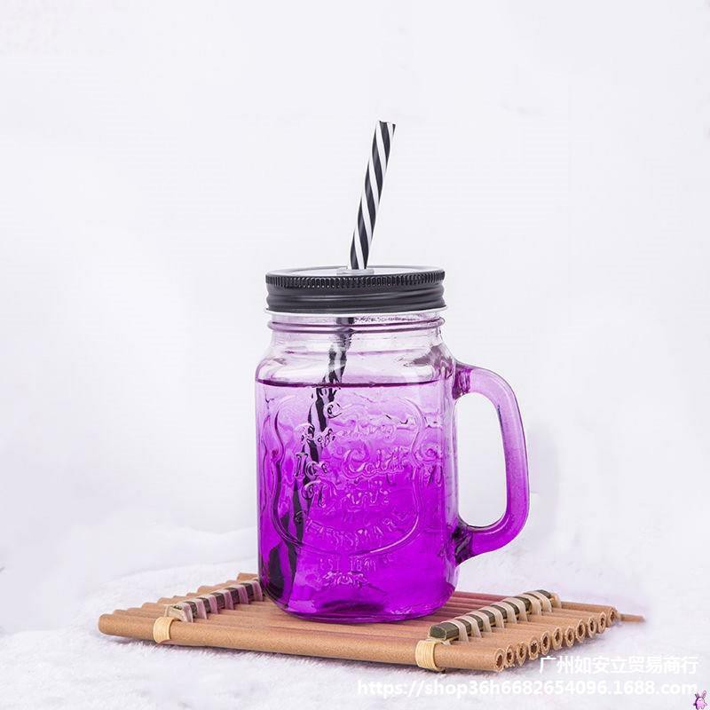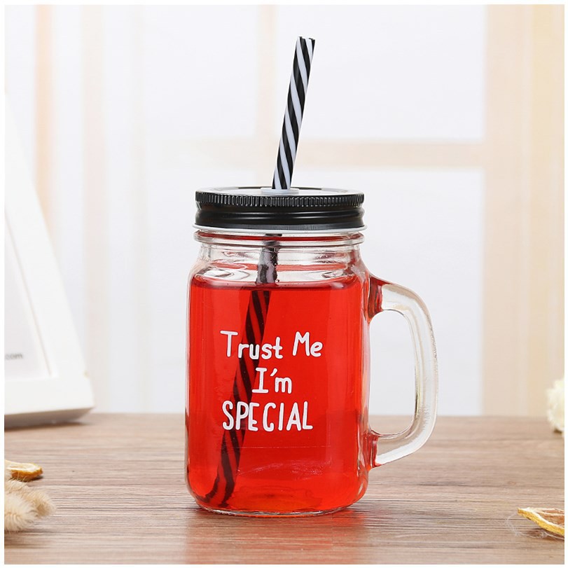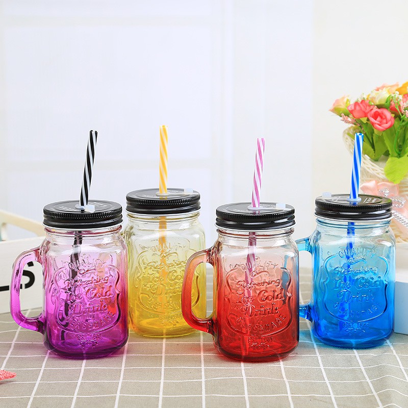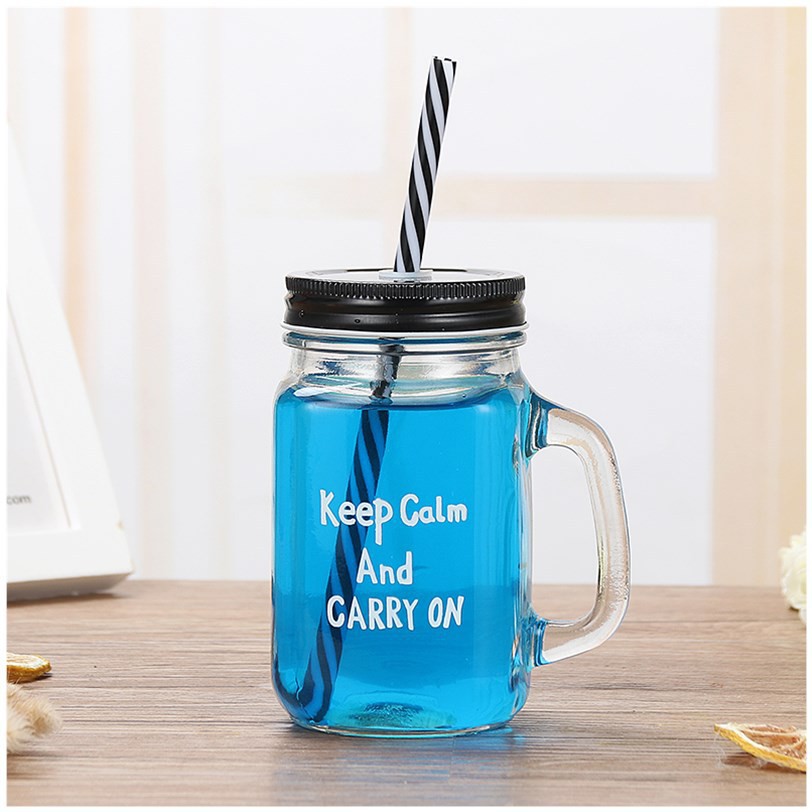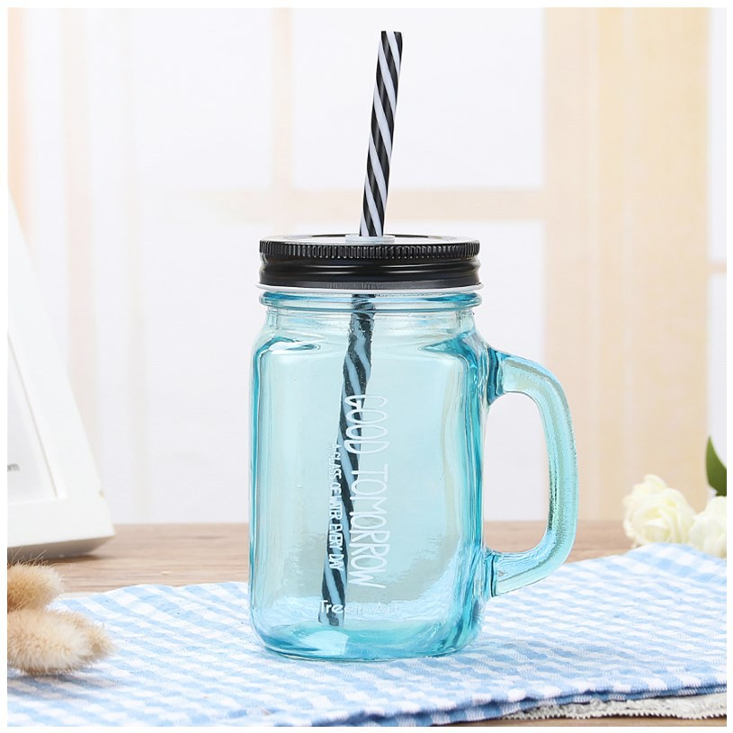 Lọ Đựng Nước Cốc Đựng Nước Thủy Tinh Có Ống Hút Thể Tích 480ml Kèm Ống Hút Xinh Xắn