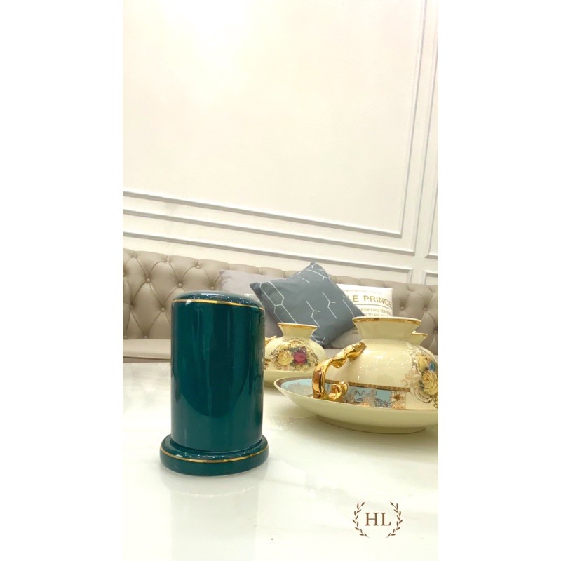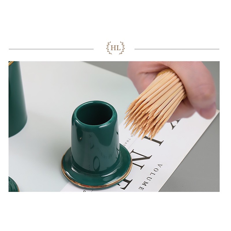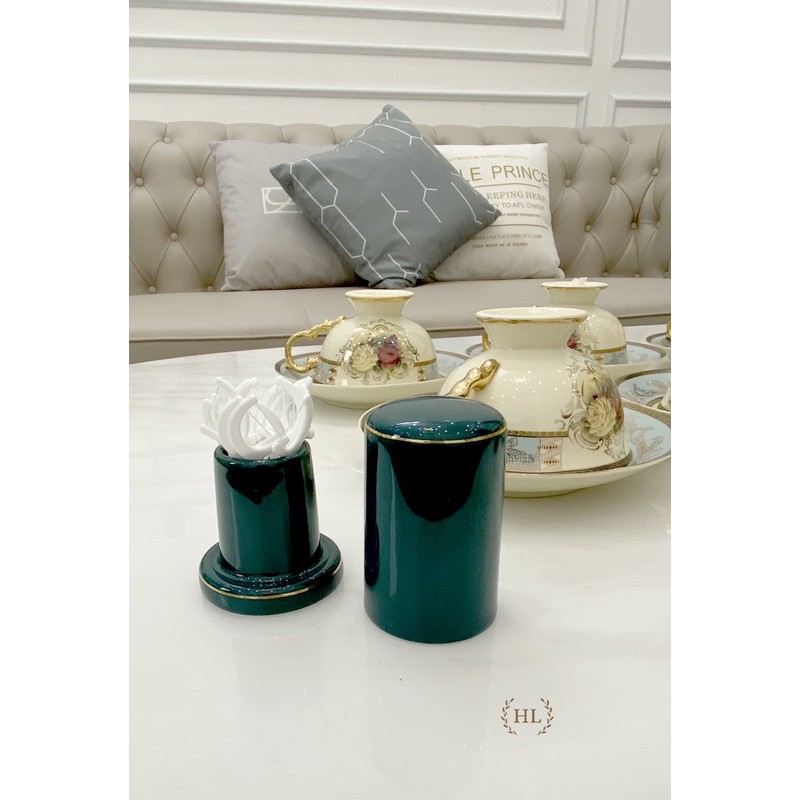 Lọ đựng tăm sứ Xanh Bắc Âu | HŨ ĐỰNG TĂM TRE | HŨ ĐỰNG TĂM NHẬT CHẤT LIỆU SỨ XƯƠNG CAO CẤP XANH NGỌC BÍCH