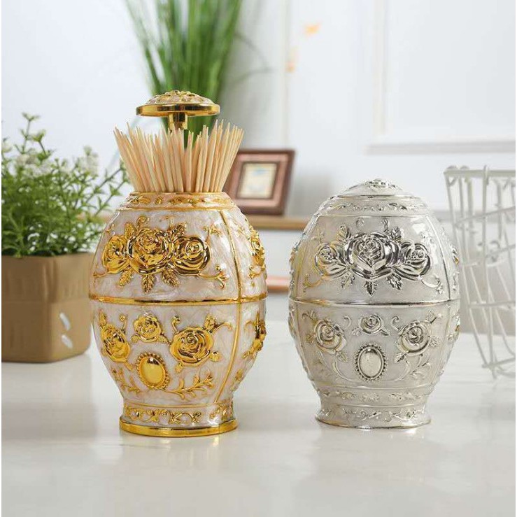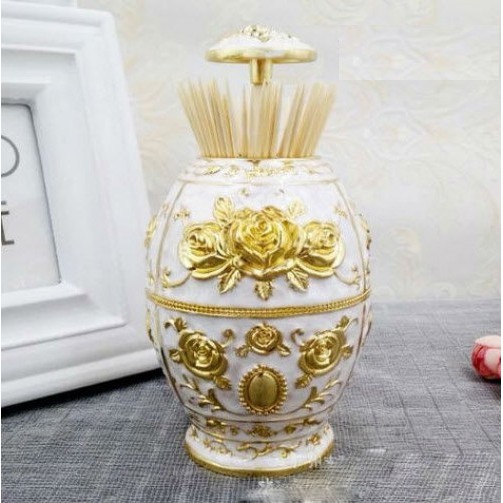 Lọ Đựng Tăm Thông Minh,Hũ Tăm Hộp Đựng Tăm Hoa Văn Tân Cổ Điển Mạ Vàng Phong Cách Dubai