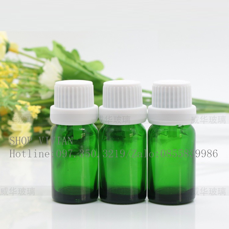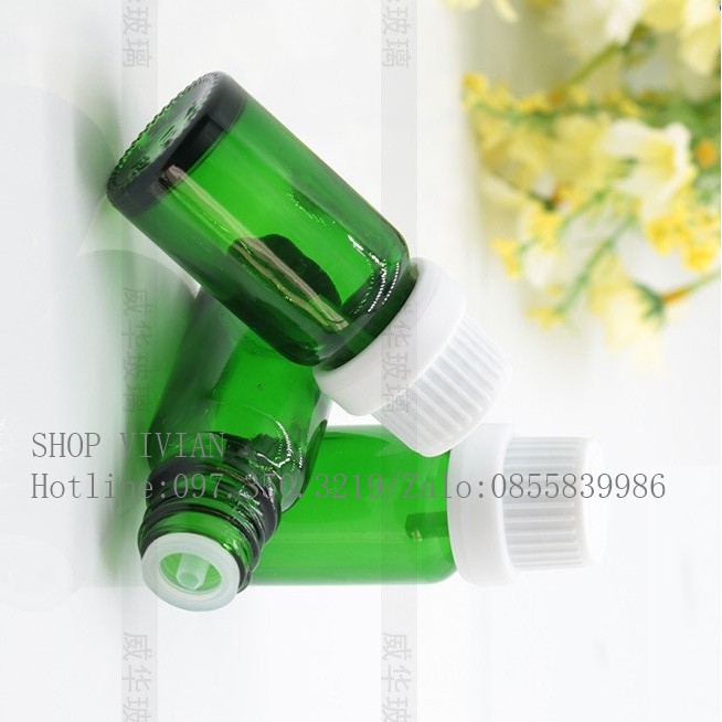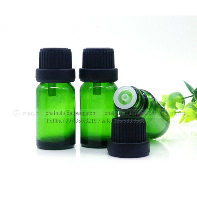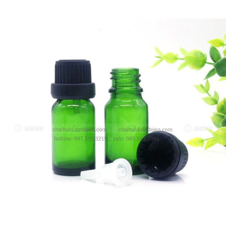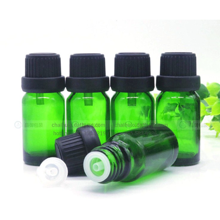 Lọ đựng tinh dầu 10ml, thân xanh lá cây, nắp vặn nhỏ giọt