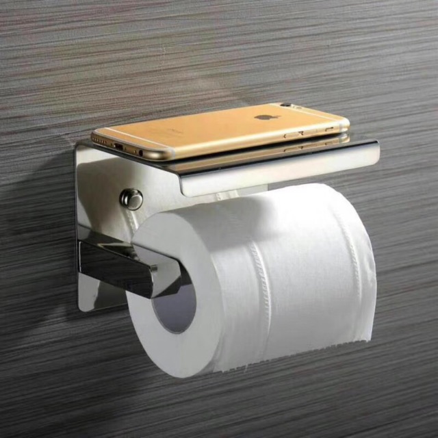 Lô giấy W04 làm từ chất liệu Inox Sus304 cao cấp sáng bóngMặt trên sản phẩm có kệ nhỏ để được điện thoại và các vật dụng nhỏ