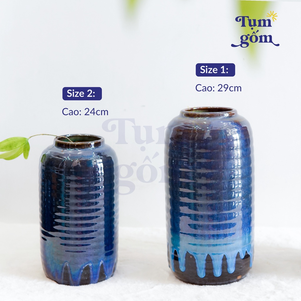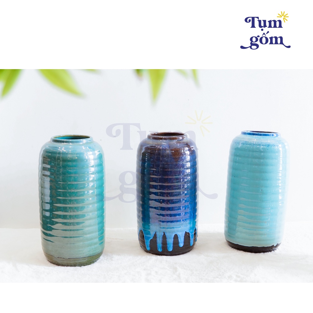 Lọ gốm cắm hoa dáng lồng đèn - Bình hoa gốm sứ Bát Tràng men hỏa biến