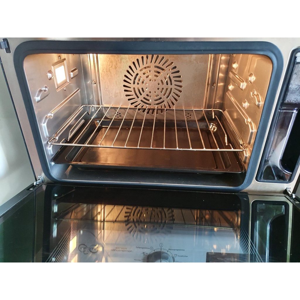 - Lò Hấp Nướng Klarstein MasterFresh Steam Oven có ngăn chứa nước lớn 1,4 lít và hoạt động với công suất hấp công suất 1100 watt. Tất nhiên, thiết bị cũng có thể được sử dụng bình thường như một lò nướng với 1900 watt: với nhiệt độ tối đa trong nhà là 230 ° C, nhiệt trên hoặc dưới và khả năng điều chỉnh nhiệt độ theo mức độ, lò không để lại gì ngoài mong muốn. Công nghệ sưởi ấm 360 độ đảm bảo phân bổ nhiệt đồng đều trong khoang nội thất 24 lít.
