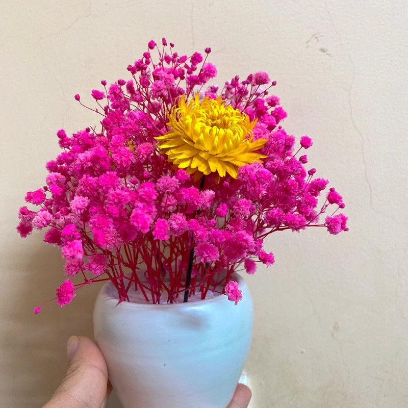Nhà cửa & Đời sống > Trang trí nhà cửa > Bình trang trí || Lọ hoa Baby hồng điểm hoa bất tử decor nhà cửa văn phòng làm quà tặngCòn hàng