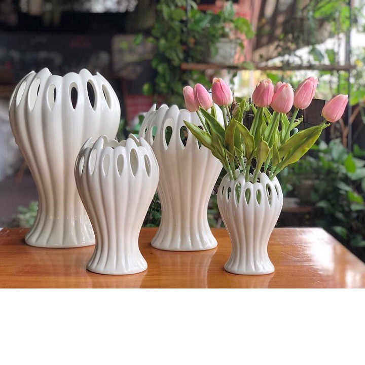 - Lọ hoa làm từ chất liệu sứ cao cấp, bền đẹp . Bạn có thể dùng để cắm hoa hoặc tạo điểm nhấn trang trí cho không gian. Lọ hoa thủy tinh có thể để trên bàn làm việc ở văn phòng, làm duyên cho tủ sách, phòng ngủ, hay phòng khách,phòng thờ… tạo thêm sự bắt mắt, tinh tế.