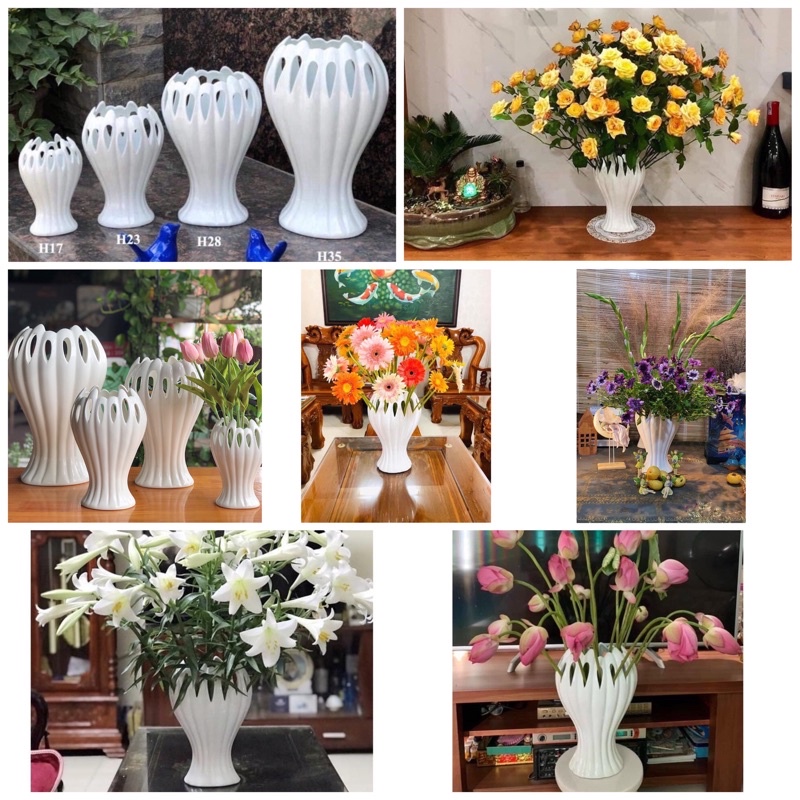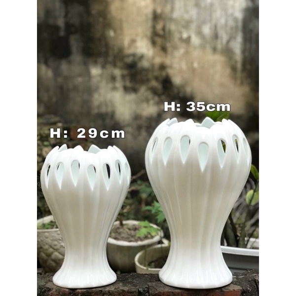 Lọ Hoa Bàn Tay Phật Men Trắng Gốm Sứ Bát Tràng Cao Cấp