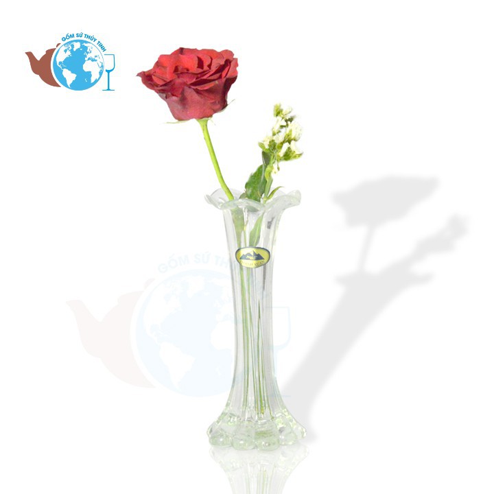Bình bông lọ hoa thủy tinh 1 cànhChiều cao 16cm đường kính miệng 6.3cm đường kính đáy 6.5cm