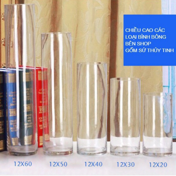 Bình bông lọ hoa thủy tinh có các size sau, bạn có thể tìm kiếm bằng cách vào shop, vào danh mục bình bông lọ hoa và chọn size hoặc chat với shop gửi link