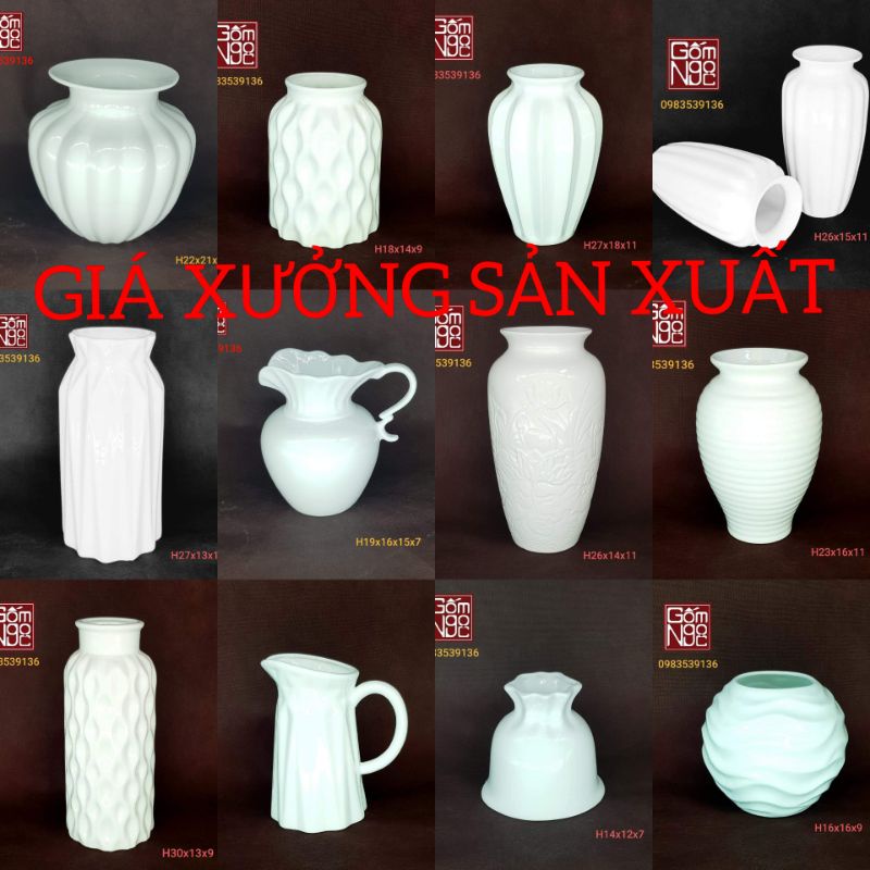 CÁC MẪU BÌNH HOA TRẮNG CAO CẤPkích thước lọ được ghi trên ảnh