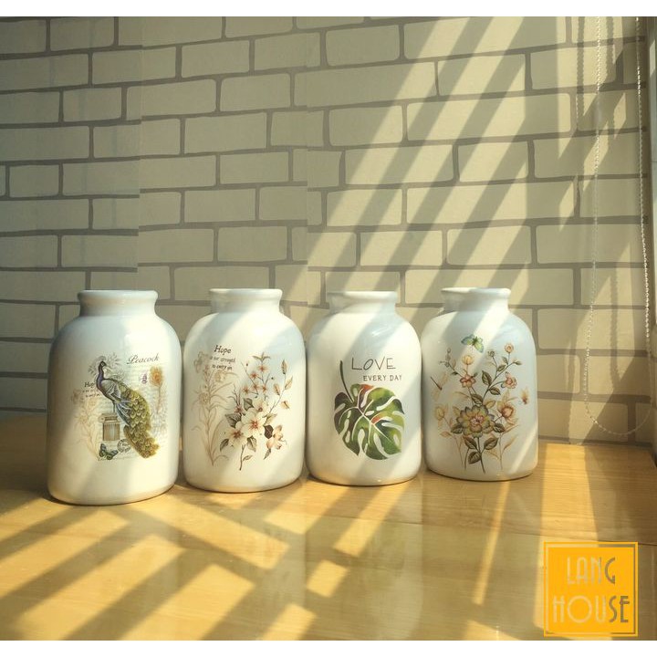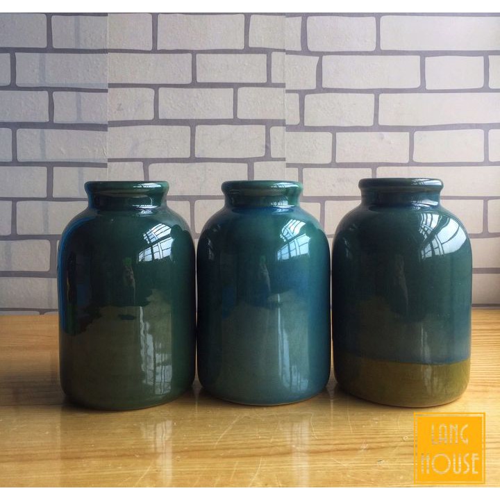 ✅ Lọ được phủ men mát thông thường (hàng loại 2) hoặc phủ men hỏa biến (hang loại 1). Loại men mát thông thường là loại có màu trắng in hoa văn. Loại men hoa biến là loại có màu xanh rêu hoặc xanh dương. Bình có kích thước cao 20cm, miệng 8cm.