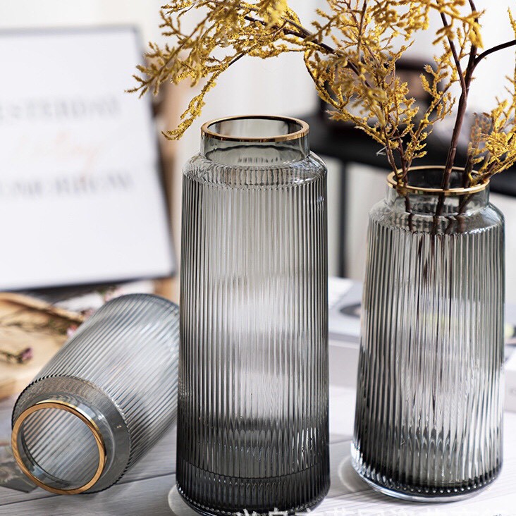 Nhà cửa & Đời sống > Trang trí nhà cửa > Bình trang trí || Lọ hoa, bình hoa thủy tinh cao cấp miệng sơn mạ vàng - Phong cách Bắc Âu Nordic VintageCòn hàng