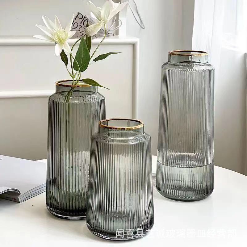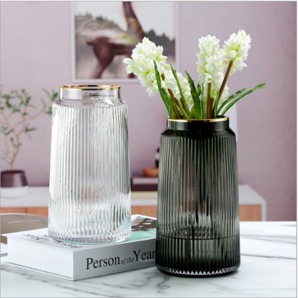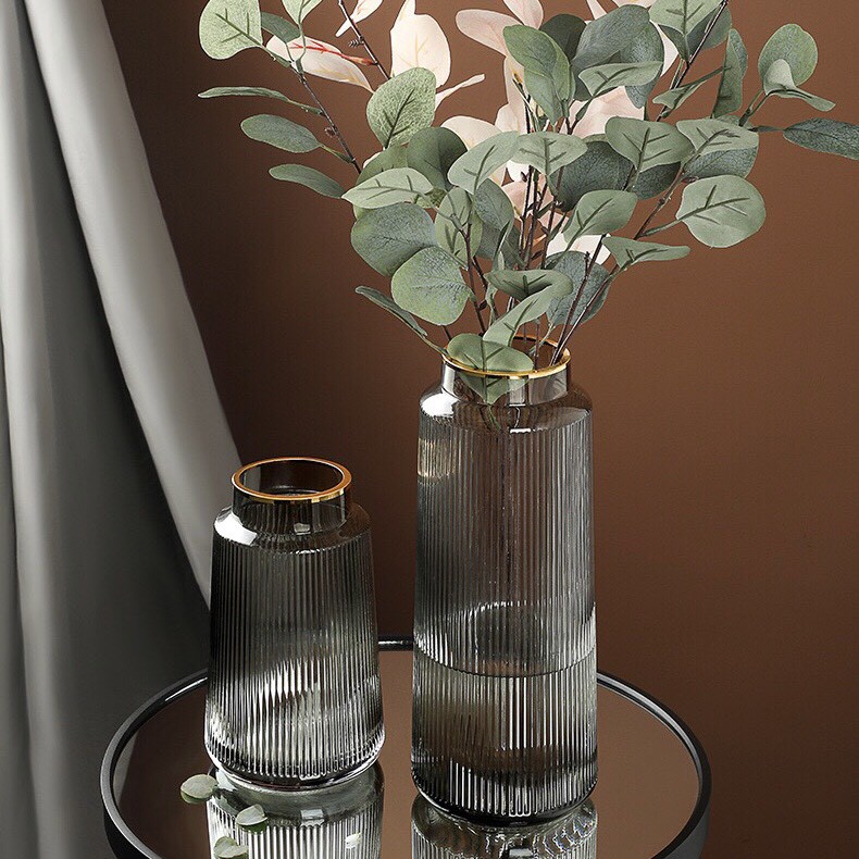 Lọ hoa, bình hoa thủy tinh cao cấp miệng sơn mạ vàng - Phong cách Bắc Âu Nordic Vintage