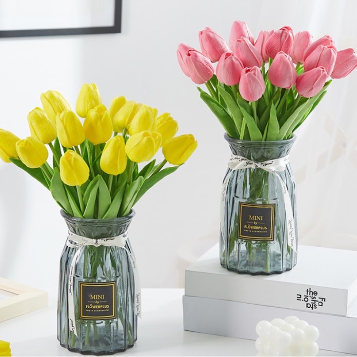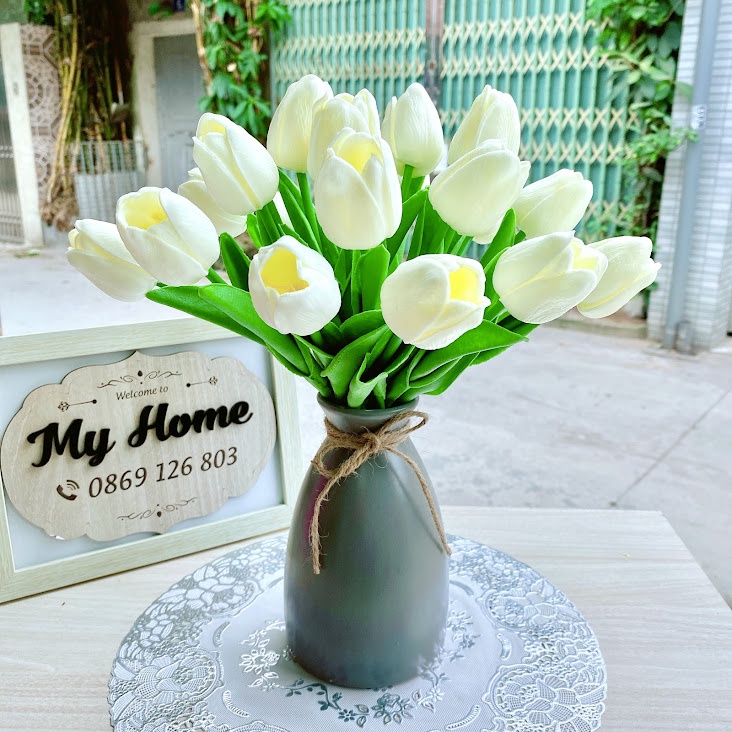 Nhà cửa & Đời sống > Trang trí nhà cửa > Hoa trang trí || (Lọ hoa cắm sẵn) Combo hoa tulip lá thẳng kèm bình cực sang trọng - Hoa giả trang trí, để bànCòn hàng