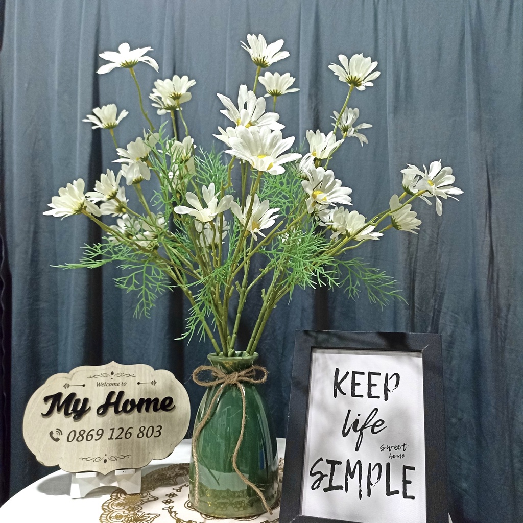 Mến chào quý khách! Cảm ơn quý khách đã click vào trang sản phẩm của shop Hoa lụa – Hoa giả - Cây trang trí Hà Nội - HOTLINE: 0869 1268 03 - https://shopee.vn/hoacocaytrangtriLưu ý: Màu hoa cúc họa mi: Màu trắng