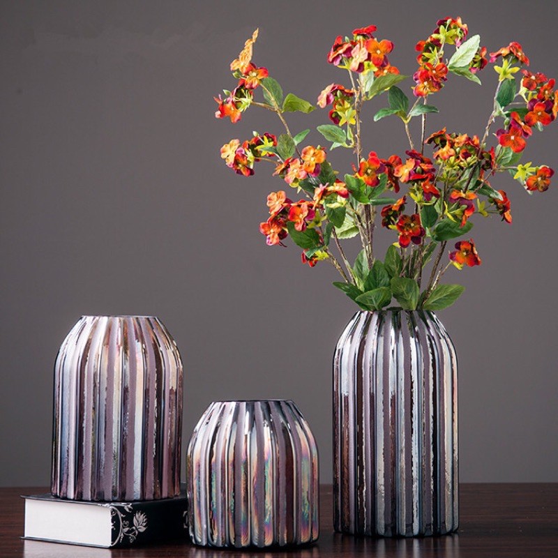 Nhà cửa & Đời sống > Trang trí nhà cửa > Bình trang trí || Lọ hoa cao cấp ánh nhũ Hồng và xanh, vân sọc thân bìnhCòn hàng