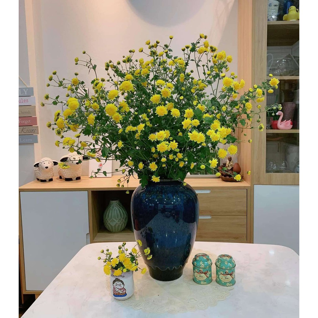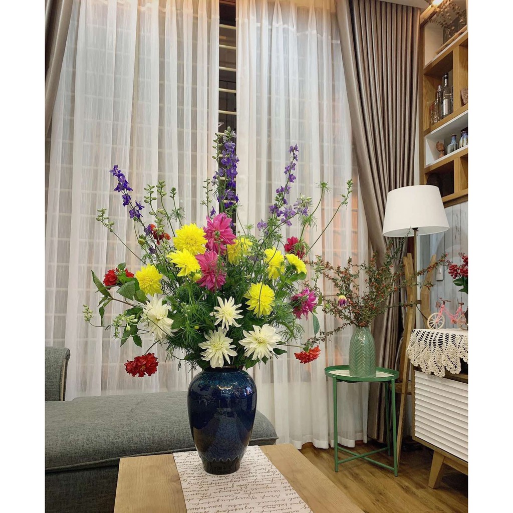 Nhà cửa & Đời sống > Trang trí nhà cửa > Bình trang trí || Lọ hoa chum bầu men xanh lam gốm Bát TràngCòn hàng