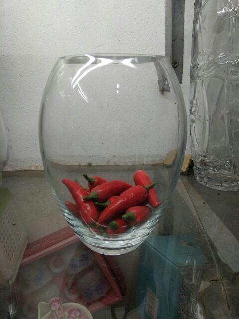 Lọ hoa chum thủy tinh dày đẹpThủy tinh trọng veo dễ cắm dáng đẹp lọ chum to cao 22 cm rộng 16 cm và mieng 11,5 cm dày 0,5cml