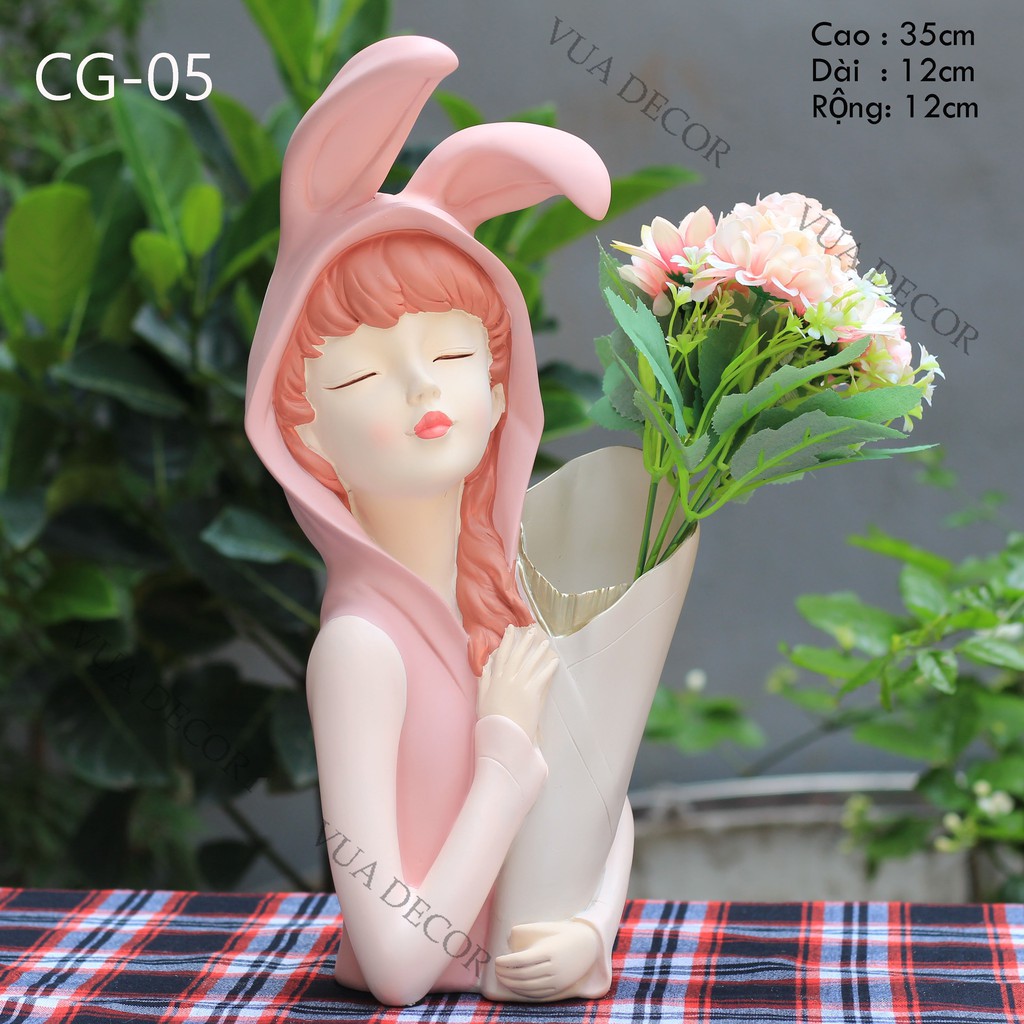 Lọ Hoa CÔ GÁI ÔM HOA Bình Hoa Decor Trang Trí cắm hoa khô để bàn