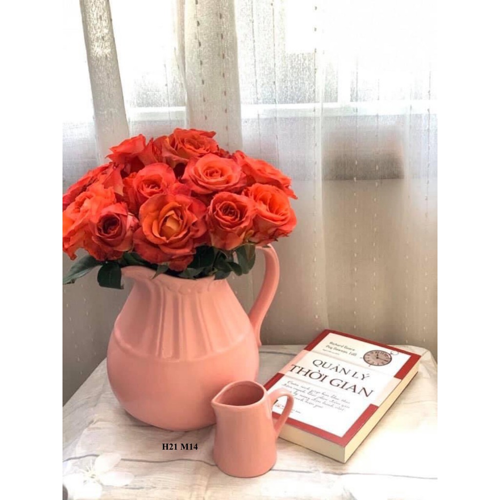 Lọ hoa dáng bình sữa phệ hồng cao 21cm miệng 14cm HTT