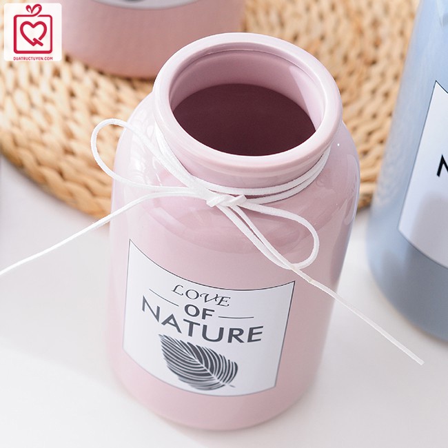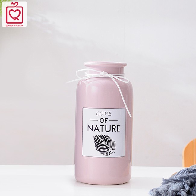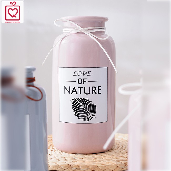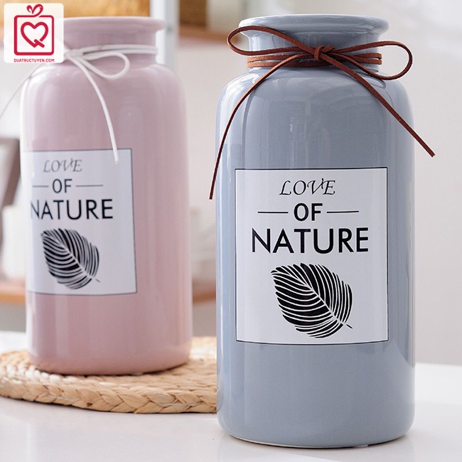 Nhà cửa & Đời sống > Trang trí nhà cửa > Bình trang trí || Lọ hoa dáng trụ Love Nature màu Pastel cổ thắt nơ, bình hoa trang trí gốm sứCòn hàng