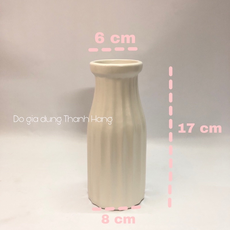 Lọ hoa decor để bàn nhỏ gốm sứ men lạnh bát tràng dáng đứng sọc trang trí phòng cắm hoa giả