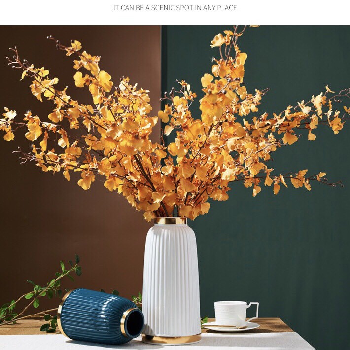 Giới thiệu Lọ hoa decor hình trụ viền vàng cao cấp Qhouse , bình hoa trang trí trang trí để bàn làm việc phong cách Scandinavian