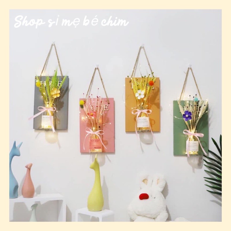Lọ hoa decor lọ hoa thủy tinh treo tường trang trí ( bảng gỗ +đèn nháy +lọ thủy tinh)