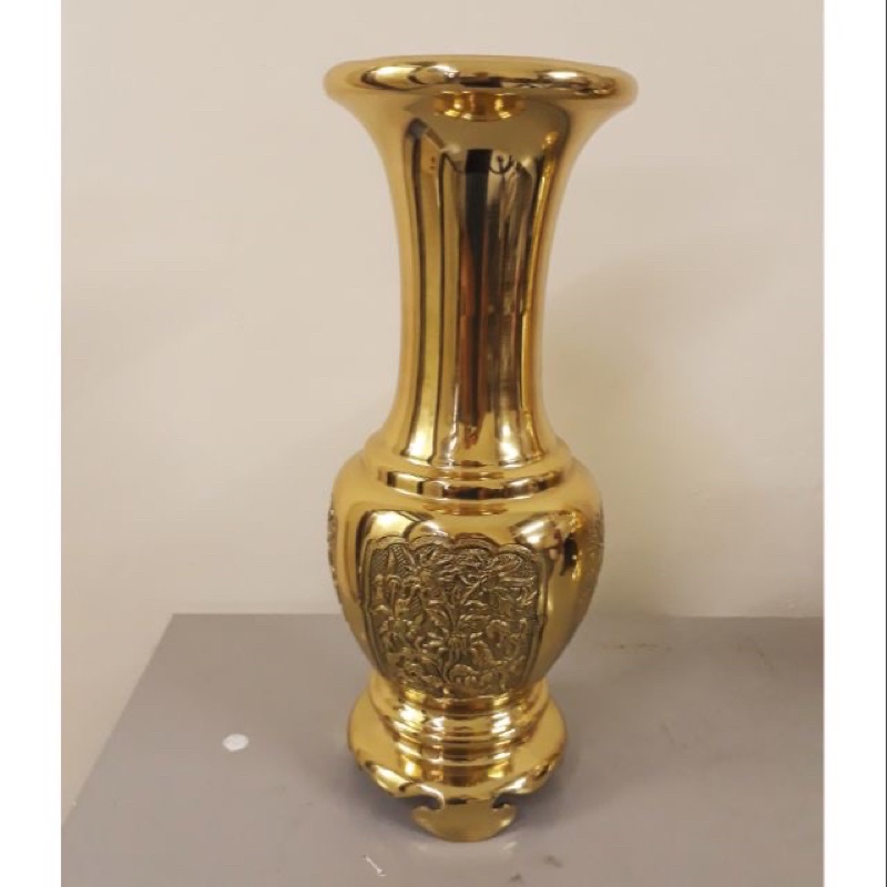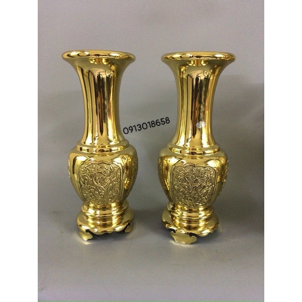 ✔sản phẩm là 1 lọ hoa bằng đồng vàng nguyên chất 100%, cao 36cm, nặng khoảng 2,8kg/ 1c được phủ màu sáng bóng giúp sản phẩm k bị xỉn màu, màu sắc bền