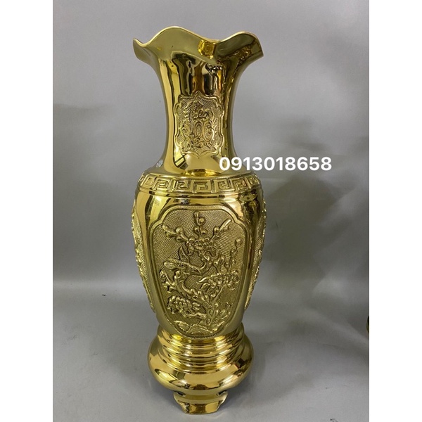 - Lọ hoa đồng nguyên chất đúc nổi hoạ tiết 4 mùa xuân hạ thu đông cao 50cm nặng 16kg/1đôi.- Dùng bày ban thờ, trang trí phòng khách, làm quà tặng