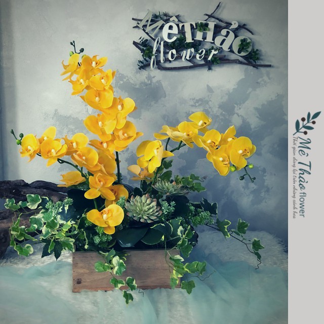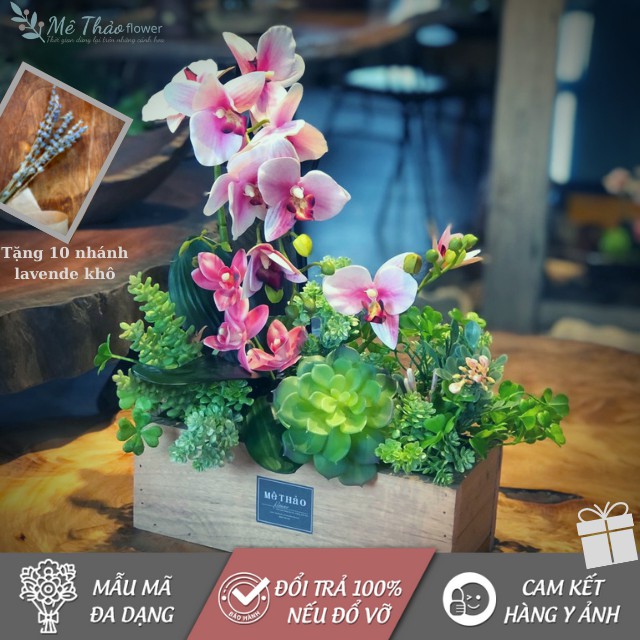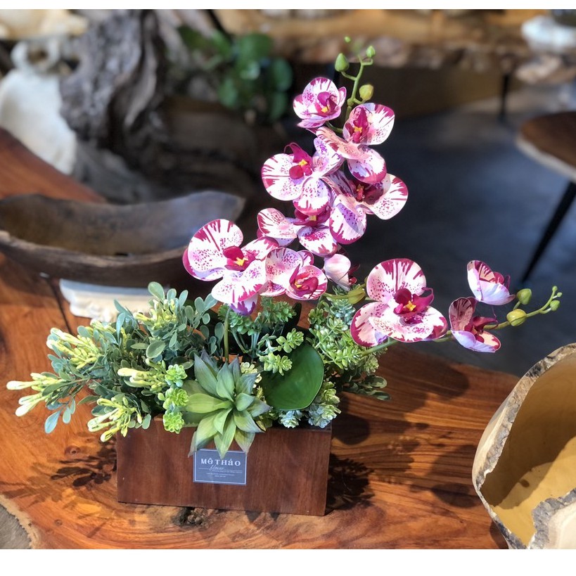 Lọ Hoa Giả Cao Cấp Mix Lan Hồ Điệp Và Sen Đá Trang Trí Nhà, Lọ Hoa Decor Shop, Quán Cafe, trang trí phòng kháchMột bình hoa vừa đẹp vừa sang trọng, lại bền lâu và không tốn công sức chăm sóc. Chỉ mua một lần mà làm đẹp cho ngôi nhà của bạn suốt cả năm. Thật khó mà bỏ qua được hộp hoa mộc lan của Mê Thảo Flower.