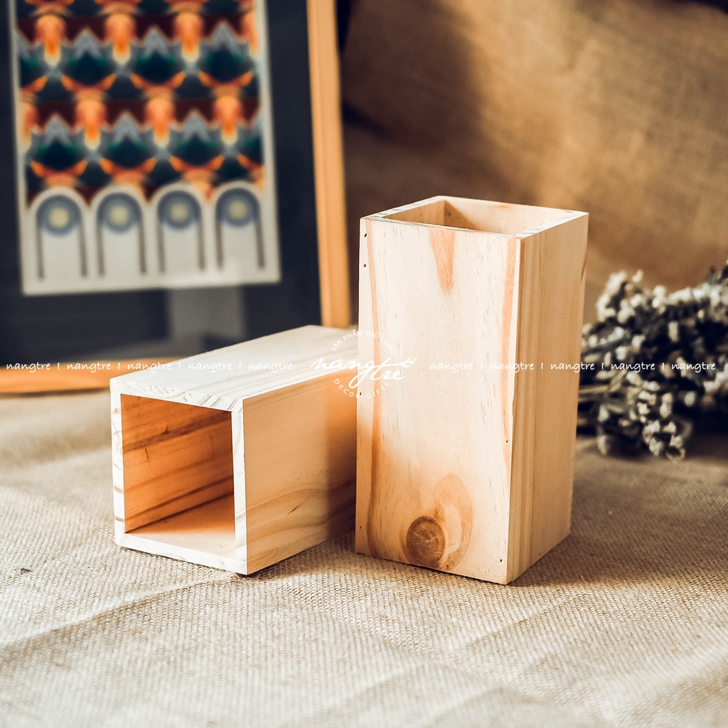 Bình gỗ cắm hoa - Lọ hoa bằng gỗĐược làm từ gỗ thông nhập có vân gỗ tự nhiên mộc mạc xinh xắn